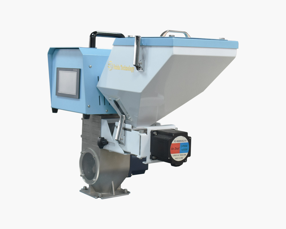 計(jì)量式色母混合機(jī),可以對(duì)塑料原料的1種主料和1-4種色母料或添加劑按比例自動(dòng)混配,適用于注塑、擠出或吹塑生產(chǎn)。該系列產(chǎn)品采用混合式步進(jìn)電機(jī),并配合專(zhuān)用微電腦控制器,可精確地計(jì)量色母及添加劑的添加比例。此混合機(jī)可以與各類(lèi)成型機(jī)信號(hào)做連接進(jìn)而同步運(yùn)轉(zhuǎn),保證成型產(chǎn)品性能一致性。
