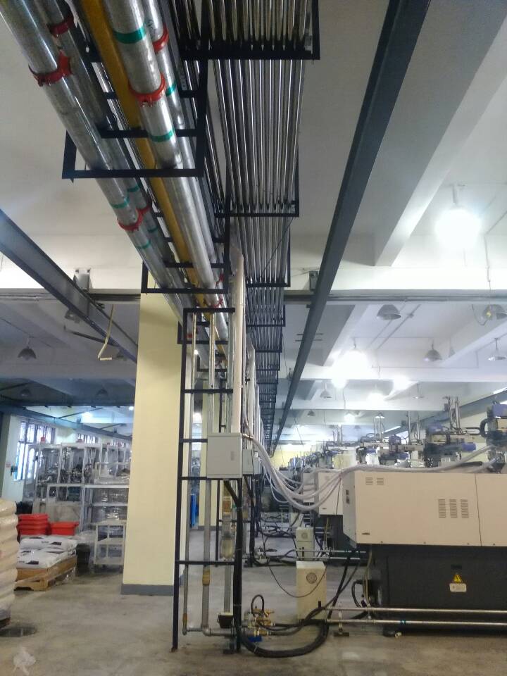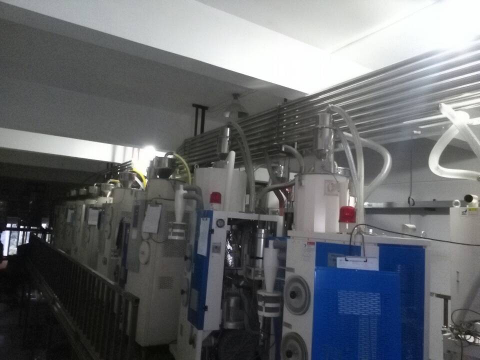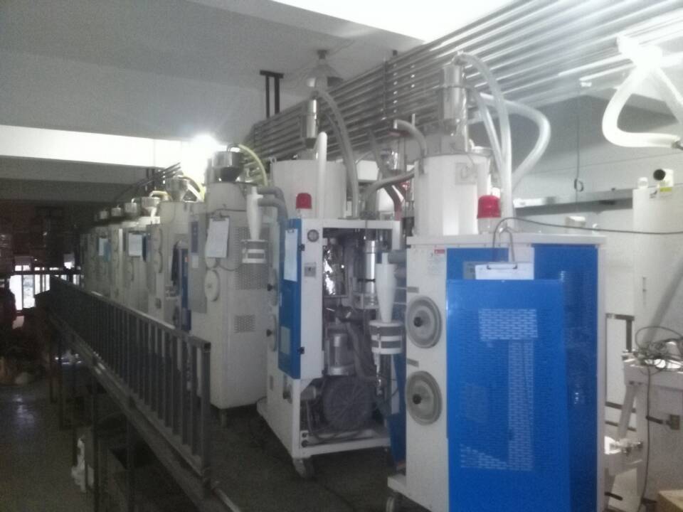 塑料中央供料系統(tǒng)采用真空傳送方式,通過(guò)集中的管路系統(tǒng)將塑料原料從儲(chǔ)料罐輸送到中央除濕干燥系統(tǒng),然后將干燥后的原料輸送到每臺(tái)注塑機(jī)中。烘干上料輸送系統(tǒng)采用“一臺(tái)機(jī)器一根管”的設(shè)計(jì)方式,烘干上料系統(tǒng)保證整個(gè)系統(tǒng)的空氣對(duì)原料進(jìn)行輸送,防止除濕干燥后的原料回潮。同時(shí)在每個(gè)輸運(yùn)行穩(wěn)定,絕無(wú)堵料的現(xiàn)象發(fā)生。